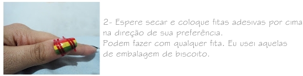 - Pinte as unhas: escolha as cores vermelho, amarelo e verde para pintar suas unhas alternadamente.