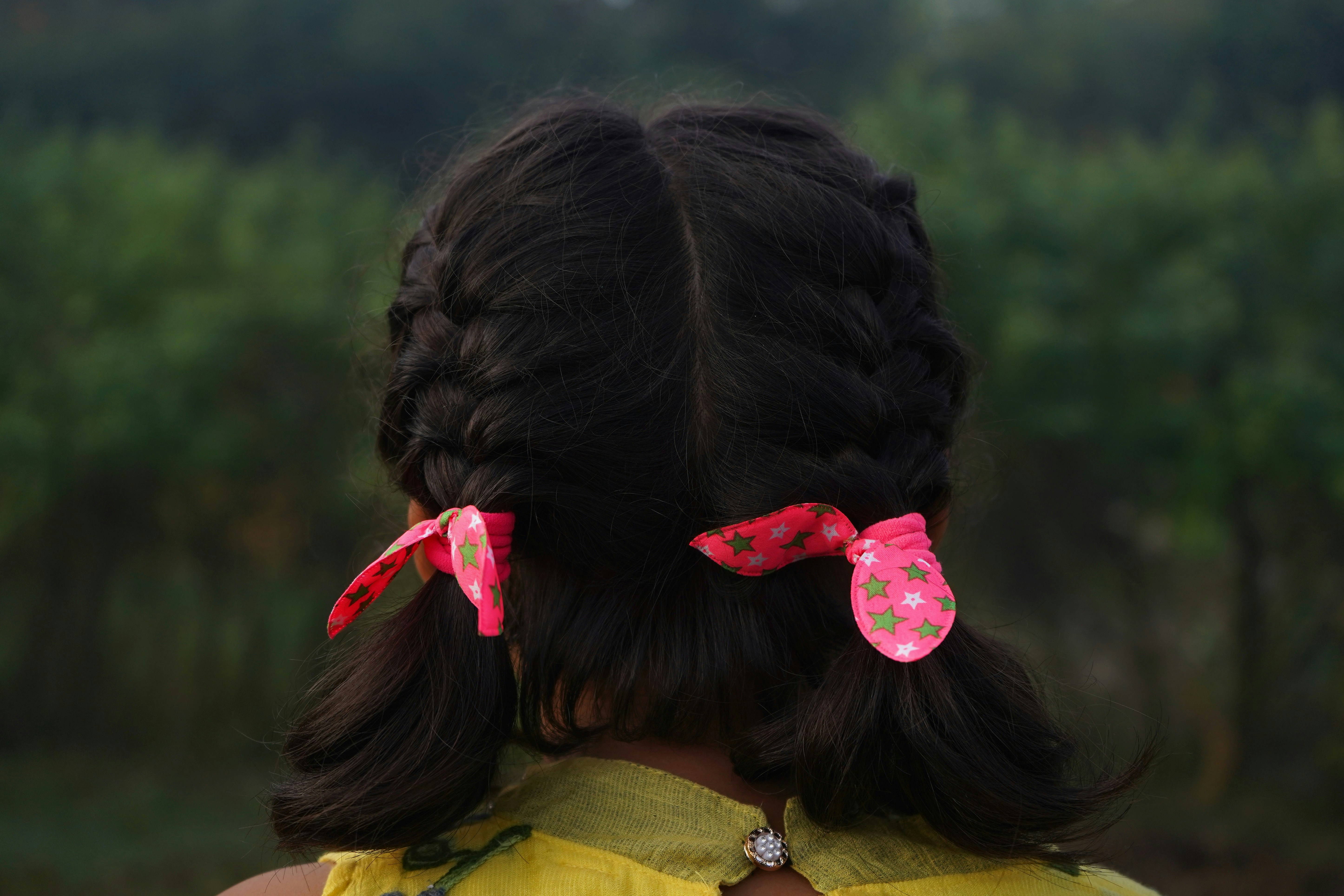 Faça várias trancinhas finas espalhadas pelo cabelo, como em uma produção boho, e finalize com prendedores coloridos ou mini lacinhos. Fica lindo em cabelos soltos ou semipresos.