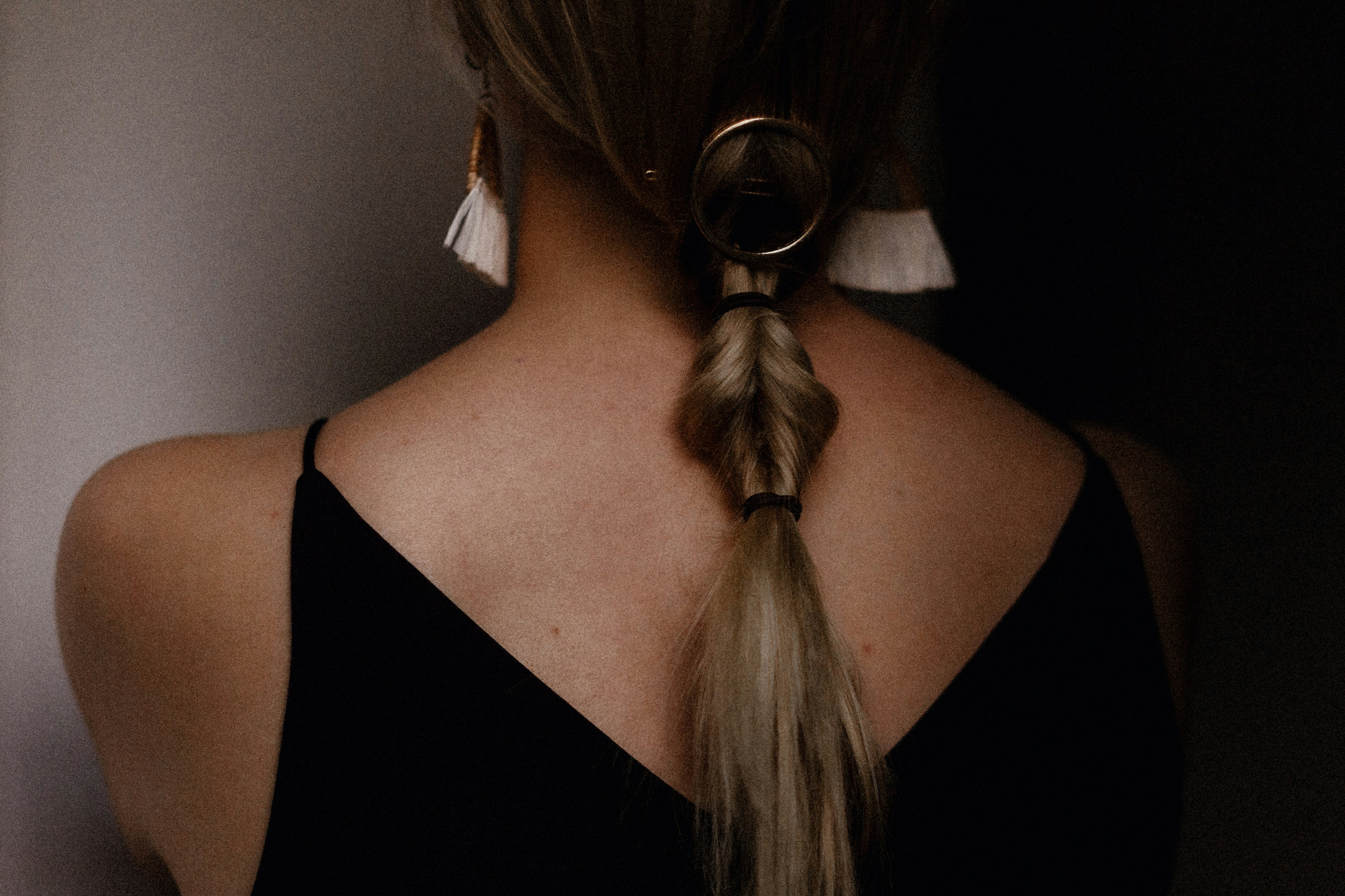 - Faça um rabo de cavalo baixo na nuca.